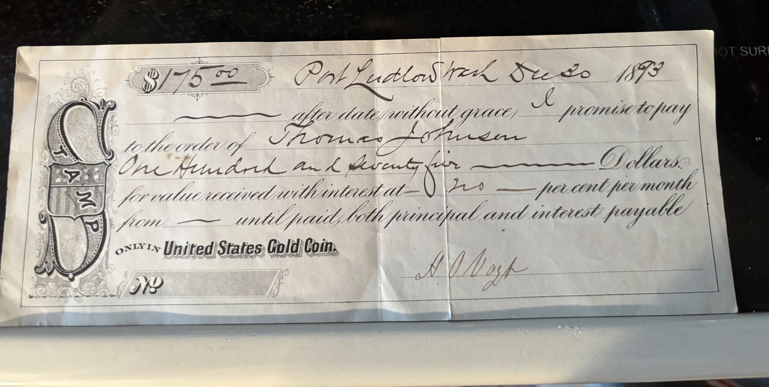 This Deposit Note, issued on December 30, 1893, for $175, is more than a financial document. It's a tangible snapshot of life during the peak of the lumber era. Just a decade before our church was built, this note represents the wages earned by the mill workers whose labor powered the entire community. For Thomas Johnson's family, it's a direct link to their great-grandfather's role in the local history we are working to preserve.